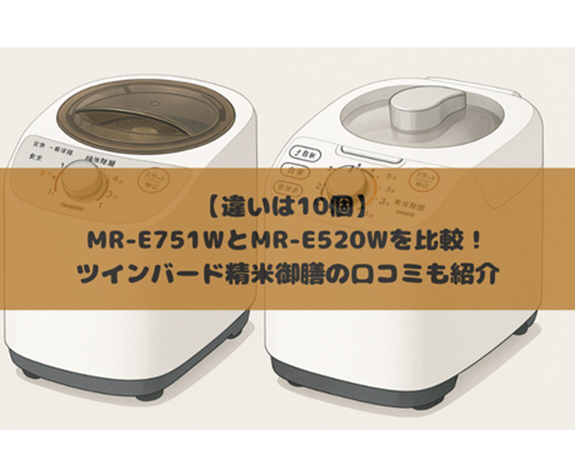 ツインバードのコンパクト精米機、精米御膳のMR-E751WとMR-E520Wの違いを比較してみた所、違いは全部で10個ありました。